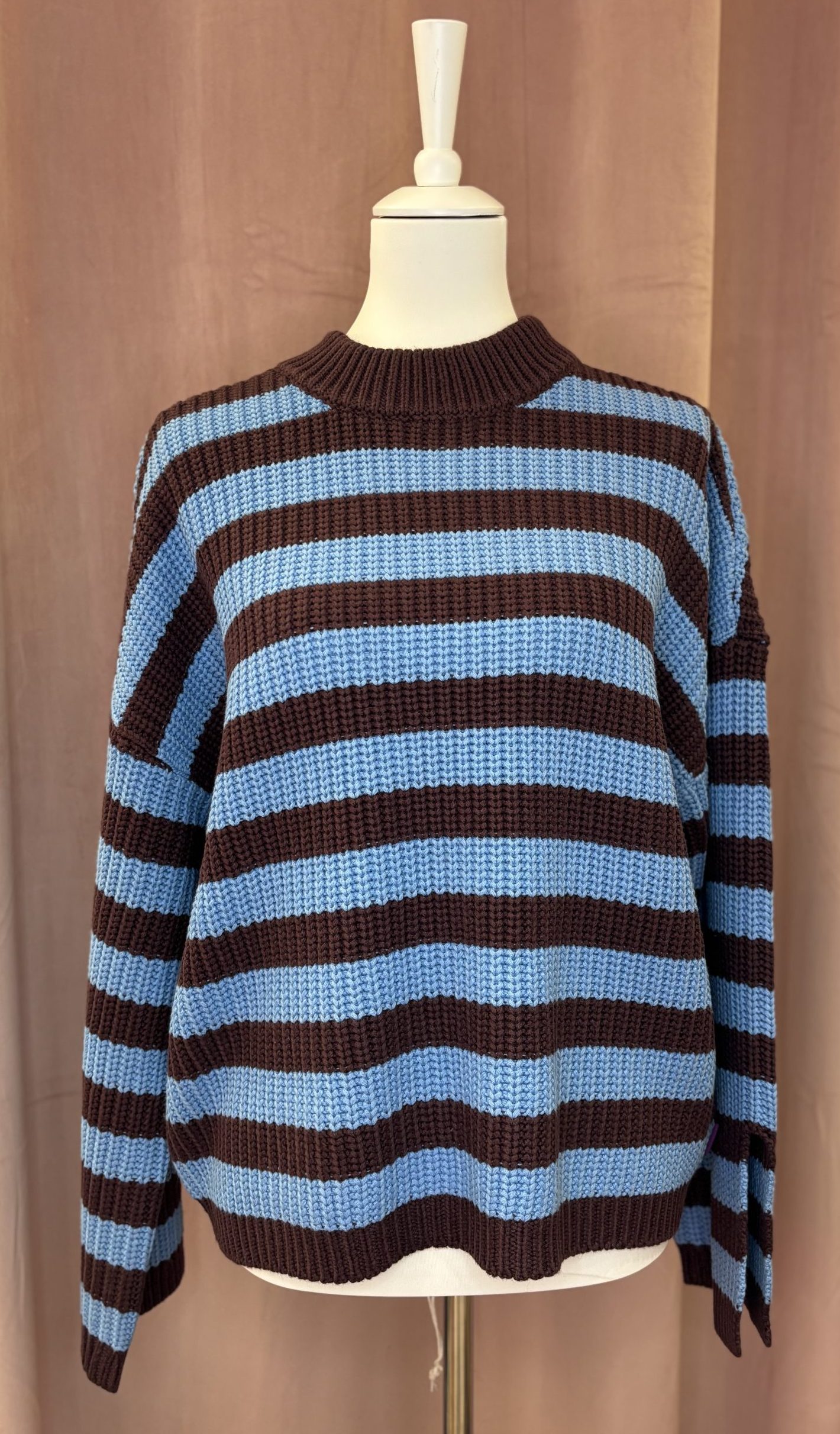 Schöner Strickpullover in einem braun/blau gestreiften Muster 🙂