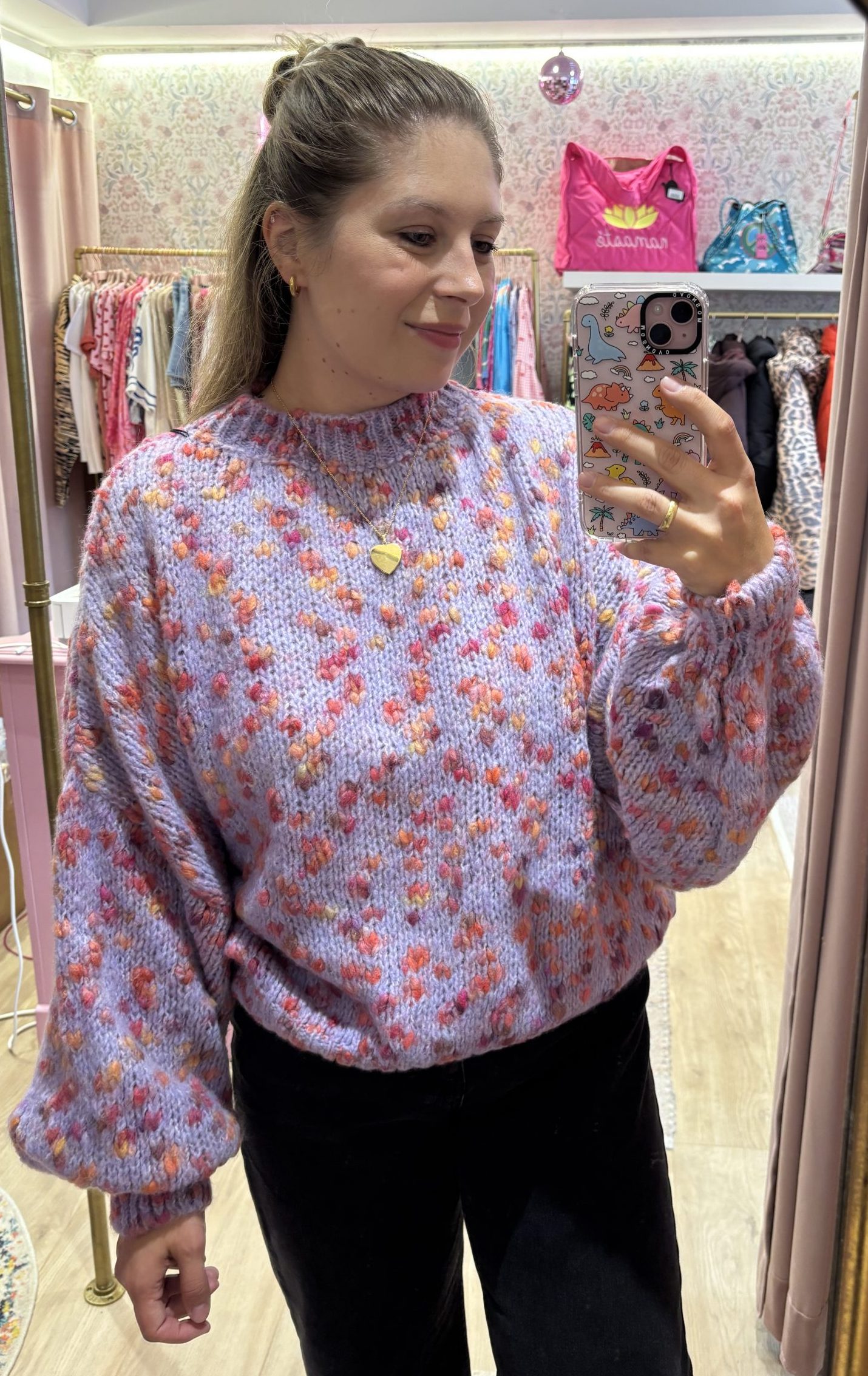 Strickpulli mit gesprenkeltem Muster lila
